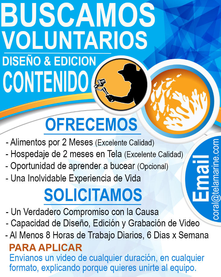 ¡Únete a Tela Marine! 🐠 Estamos en búsqueda de #DiseñadoresGráficos y #EditoresDeVideo para un #Voluntariado único de 2 meses en Tela. 🎥✨ Colabora en una emocionante campaña de #ConservaciónMarina y fortalece nuestra Identidad Nacional. 🇭🇳 ¡Sé parte del cambio con Tela Marine! 🌊