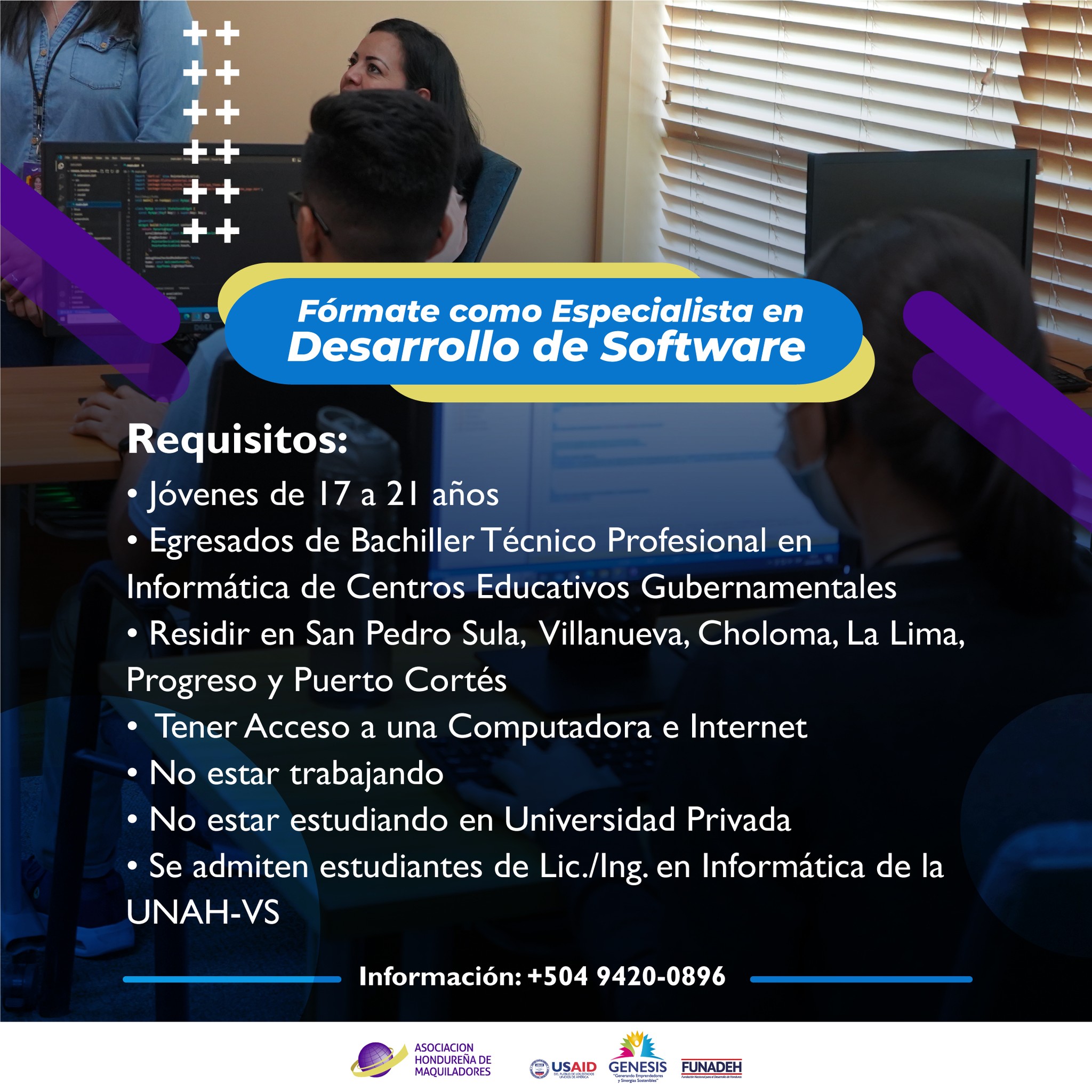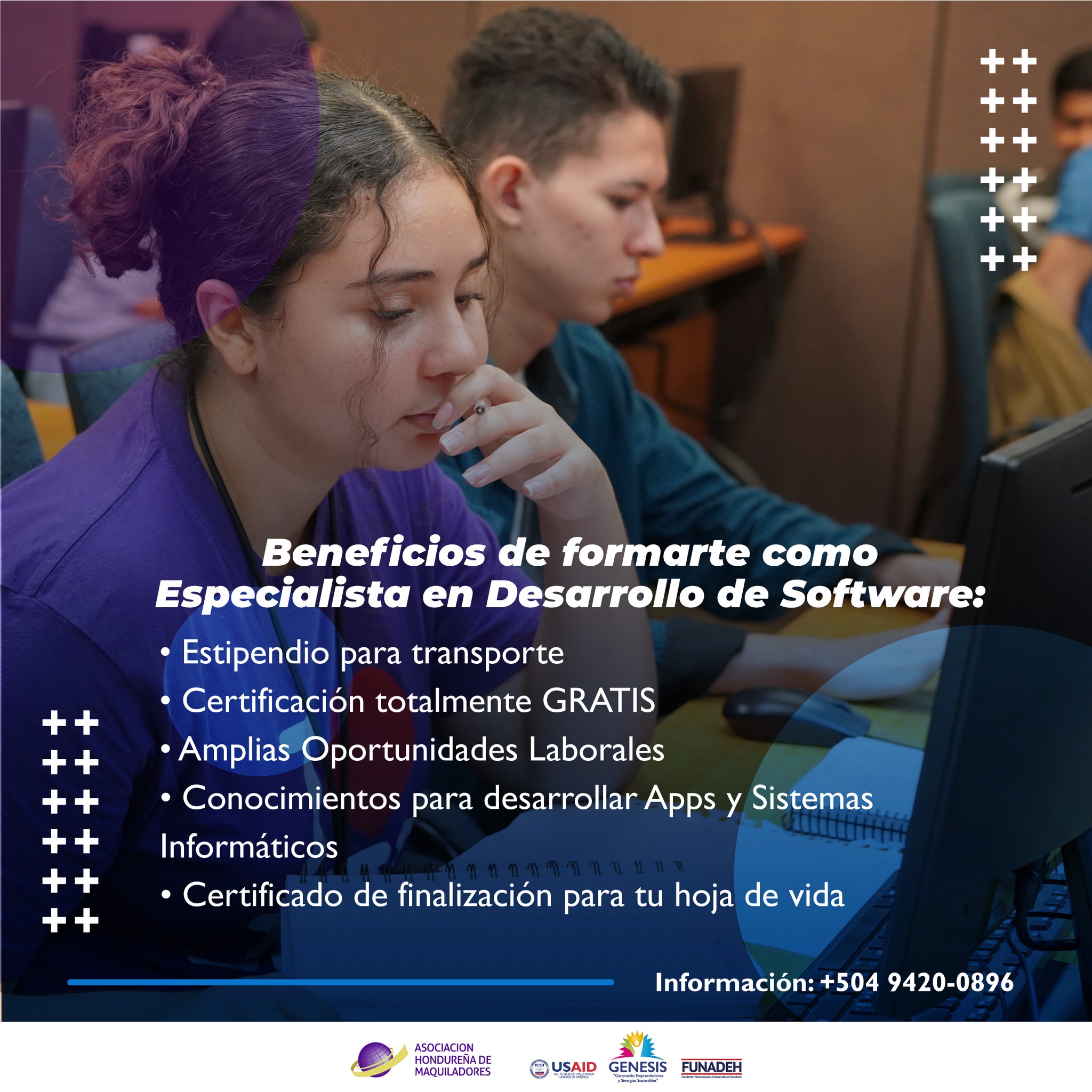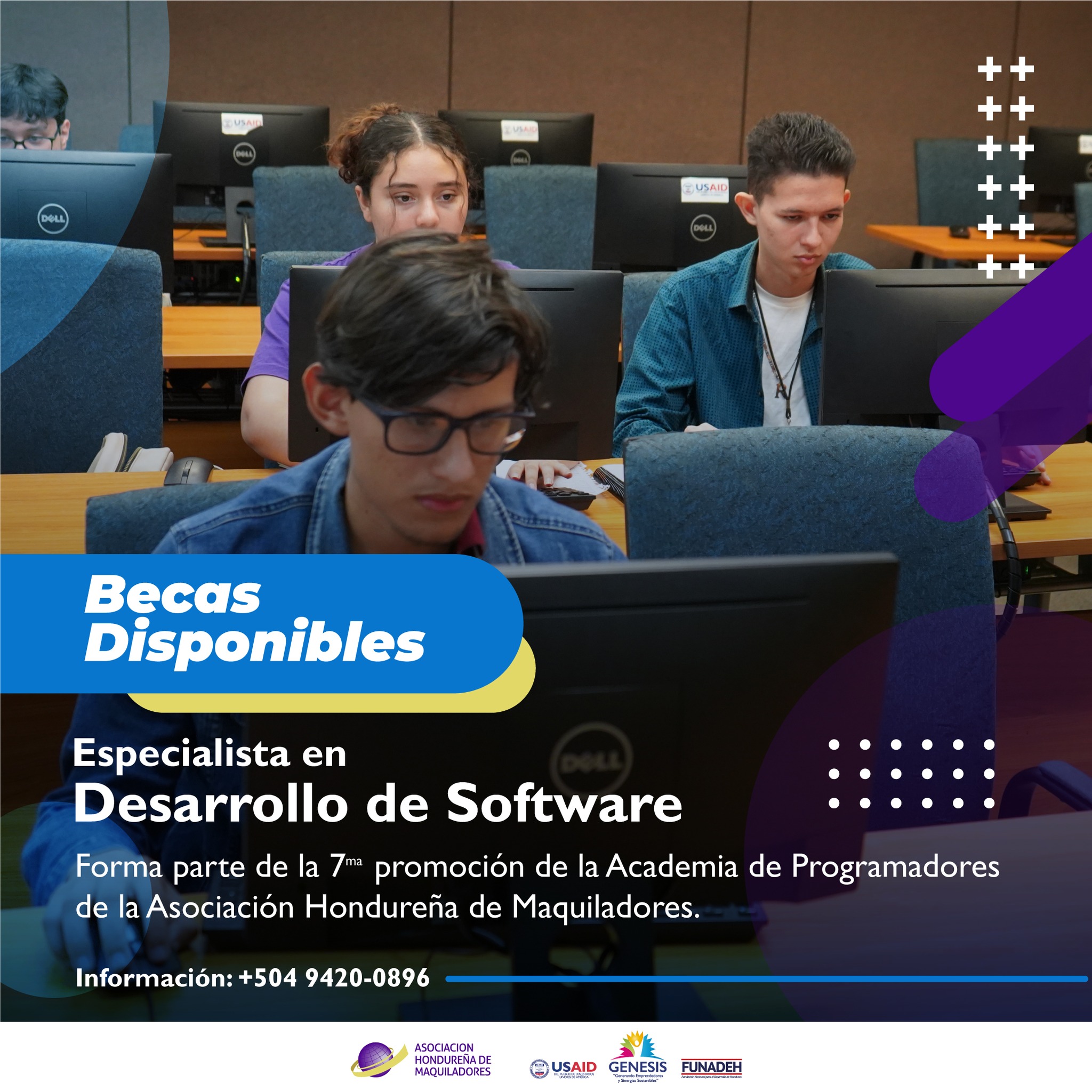 ¿Eres apasionado por la programación? ¡Esta es tu oportunidad! Únete a la séptima promoción del Especialista en Desarrollo de Software en la Academia de la Asociación Hondureña de Maquiladores. Transporte, certificación y conocimientos para tu futuro laboral GRATIS. ¡Inscríbete ya y prepárate para el éxito!